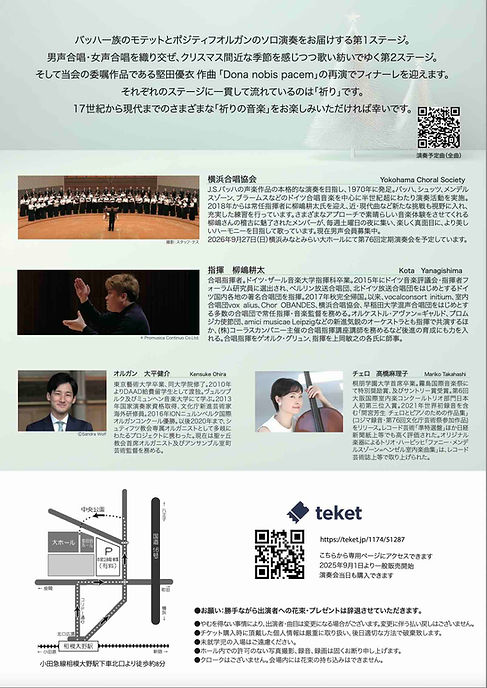 17世紀から現代までのさまざまな「祈りの音楽」をお楽しみいただければ幸いです。